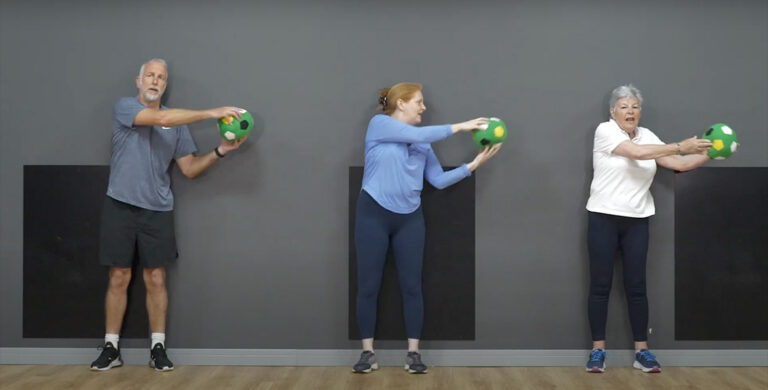 Once you know the exercises from the video above, you can try a full class session by following this video.  You should apply the same safety considerations as advised in the introduction video and work at a pace that is suitable for you. Your heart rate should rise a little so you feel warm and a little sweaty but you should not be out of breath or in any pain. Don’t be discouraged if you experience a little muscle stiffness in the following couple of days. This is a sign your body is making the necessary changes to make your muscles stronger.